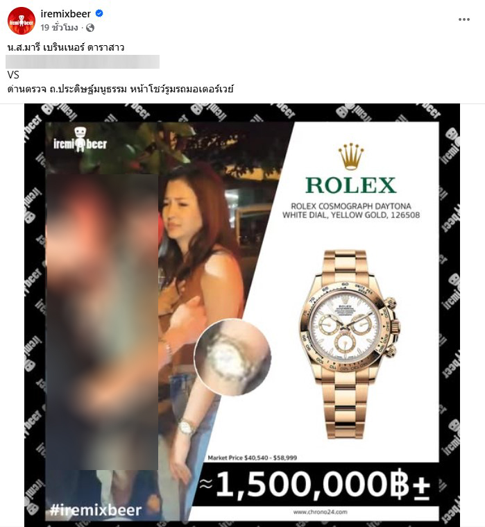 ล่าสุด เพจดังบนโลกออนไลน์ได้เปิดเผยราคานาฬิกาหรูที่มารีสวมใส่ในวันเกิดเหตุ โดยมีการประเมินว่ามีมูลค่าประมาณ 1,500,000 บาท ทำเอาหลายคนถึงกับตกใจในความหรูหราและฐานะการเงินที่ไม่ธรรมดาของเธอ