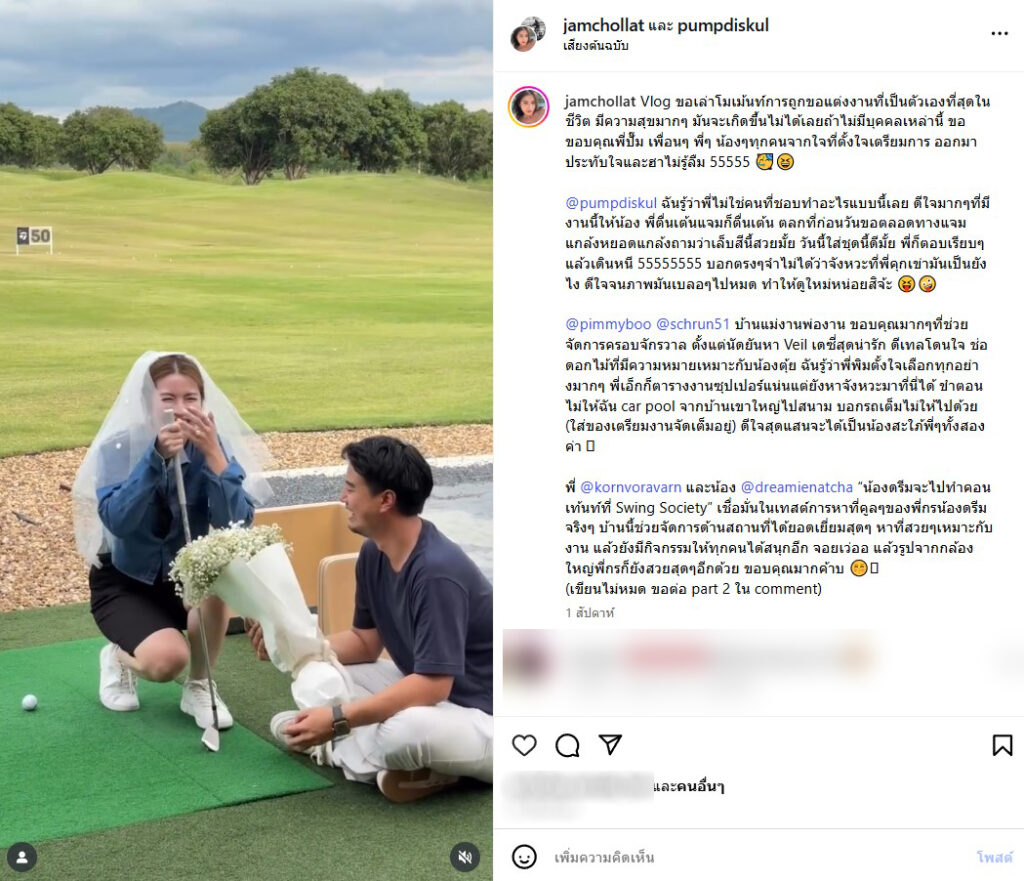 แจมได้โพสต์ภาพและคลิปบรรยากาศสุดประทับใจลงในโซเชียล พร้อมเล่าช่วงเวลาที่เกิดขึ้นซึ่งเต็มไปด้วยความสุข ความอบอุ่น และเสียงหัวเราะจากครอบครัว เพื่อนๆ และคนสนิทที่ช่วยกันเตรียมการอย่างตั้งใจ