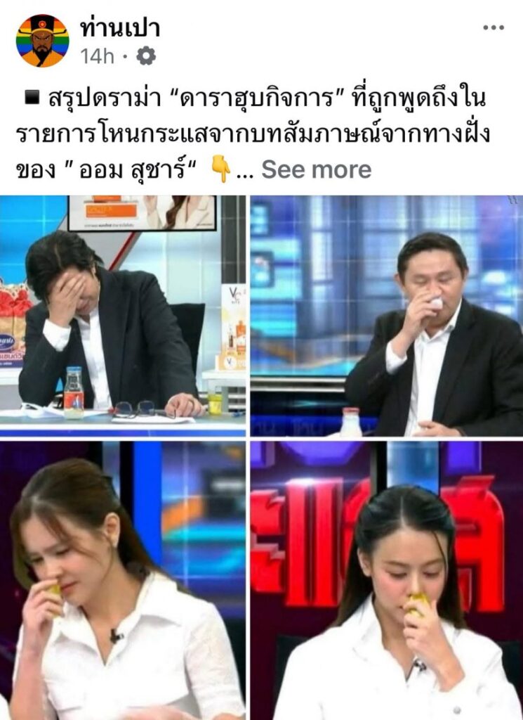 กลายเป็นกระแสร้อนในโลกโซเชียล หลังรายการโหนกระแส เทปที่ออม สุชาร์ พร้อมน้องสาวเข้าร่วมเพื่อชี้แจงประเด็นดราม่ากิจการ เมื่อวันที่ 19 กันยายน 2568 ช่วงหนึ่งของรายการ ออมได้อธิบายถึงการรีวิวสินค้าให้กับแบรนด์ของพริม ณัฐชา ซึ่งเป็นหุ้นส่วนทางธุรกิจ