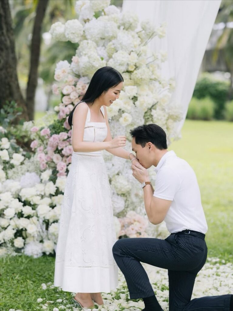งานหมั้นจัดขึ้นอย่างเรียบง่ายแต่แฝงด้วยความหรูหรา ในสวนที่ตกแต่งด้วยดอกไม้โทนสีขาวและชมพูตลอดทางเดิน ไฮไลต์อยู่ที่ช่วงเวลาที่ฝ่ายชายคุกเข่ามอบแหวนหมั้นสุดหรู พร้อมช่อดอกกุหลาบสีขาวช่อโตให้กับเอิร์น ก่อนที่เจ้าตัวจะเผยรอยยิ้มแห่งความสุขและโพสต์ข้อความบรรยายความรู้สึกผ่านโซเชียล มีเดียว่าเป็นวันที่จะจดจำไปตลอดชีวิต