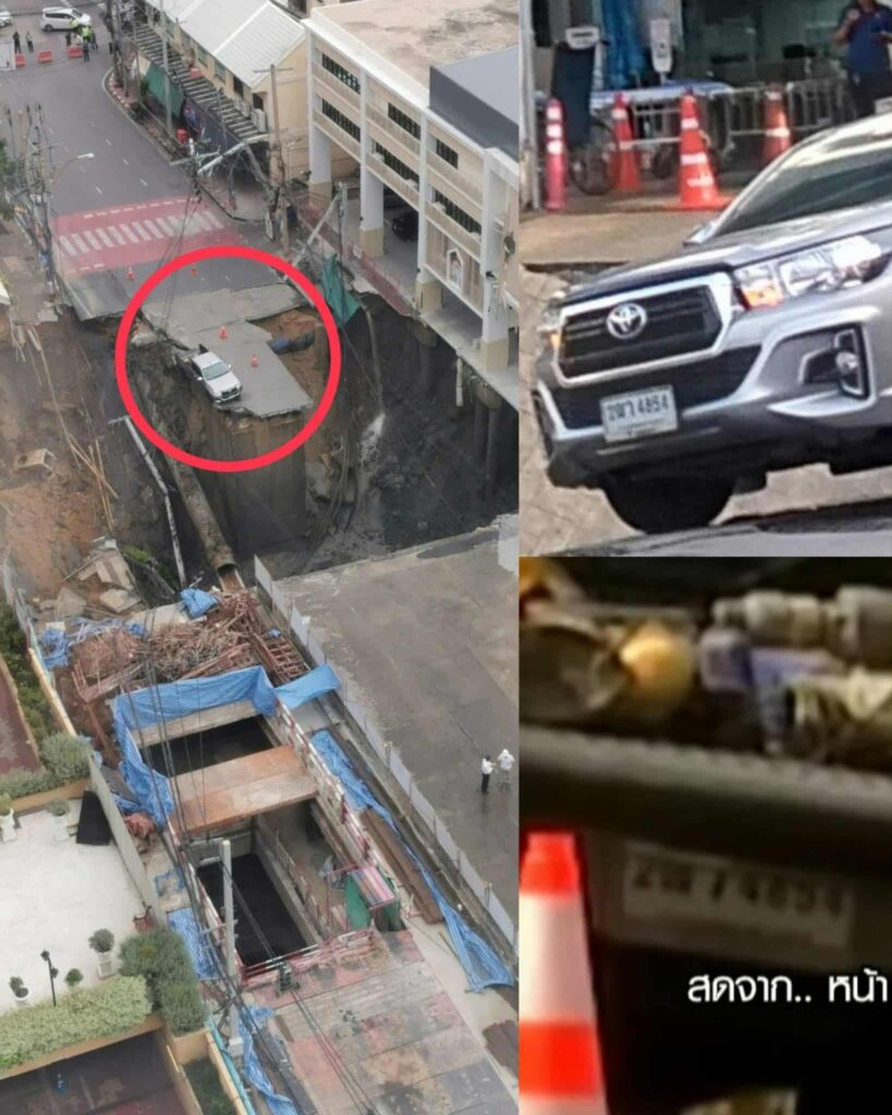 เหตุการณ์นี้สร้างความสนใจอย่างมาก เนื่องจากมีรถกระบะคันหนึ่งที่จอดค้างอยู่เพียงคันเดียวบริเวณใกล้จุดถนนทรุดและไม่ได้รับความเสียหาย โดยมีภาพจากหลายมุมที่เผยให้เห็นเลขทะเบียน 4854