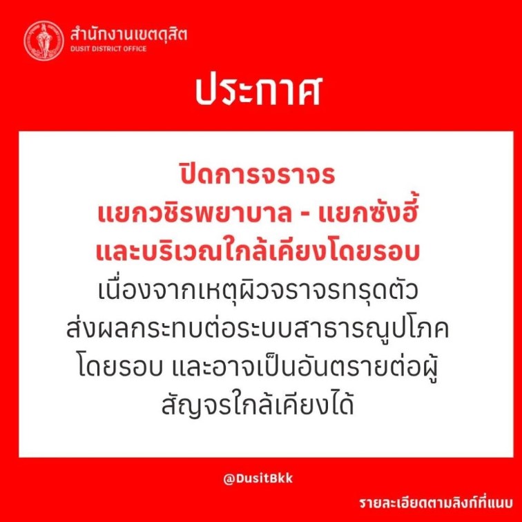 เกิดเหตุพื้นถนนทรุดเป็นวงกว้างบริเวณหน้าโรงพยาบาลวชิรพยาบาล ถนนสามเสน ทำให้มีการประกาศปิดการจราจรตั้งแต่แยกวชิรพยาบาลถึงแยกซังฮี้ รวมถึงพื้นที่ใกล้เคียงชั่วคราว เพื่อความปลอดภัยของผู้ใช้เส้นทางและป้องกันผลกระทบต่อระบบสาธารณูปโภคโดยรอบ