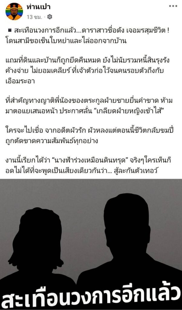 ทำเอาชาวเน็ตจับตากันอีกครั้ง หลังเพจบันเทิงชื่อดังเผยเรื่องราวของดาราสาวที่กำลังเผชิญมรสุมชีวิตอย่างหนัก รายงานระบุว่าดาราสาวถูกขอหย่าและให้ย้ายออกจากบ้าน พร้อมทั้งต้องเผชิญปัญหาด้านทรัพย์สินและหนี้สินที่สะสมมา