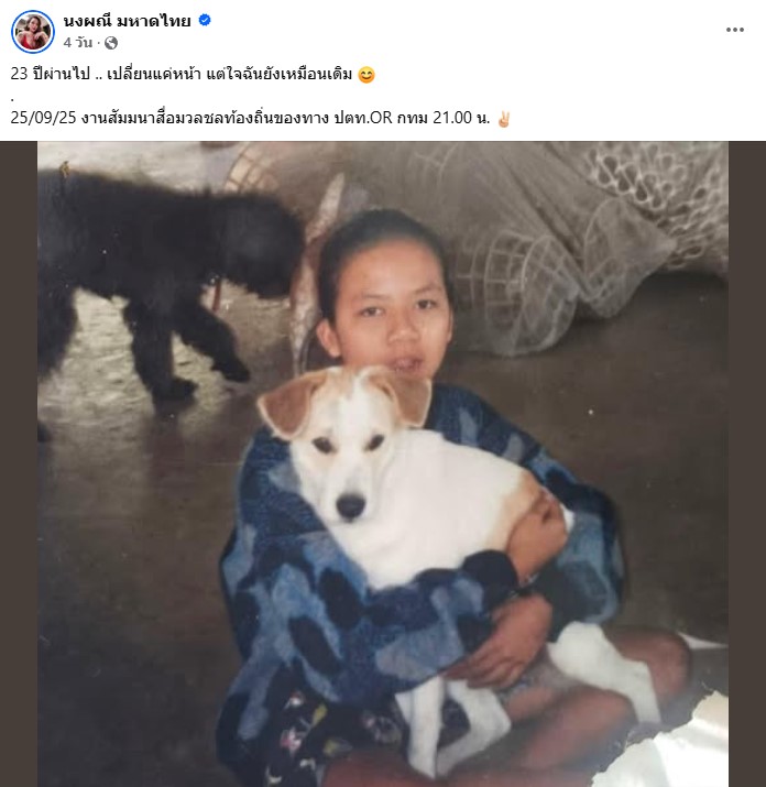 ล่าสุด จ๊ะออกมาเผยภาพวัยเด็กให้ได้ติดตามกัน หลังเวลาผ่านไปถึง 23 ปี พร้อมเล่าย้อนความรู้สึกว่าแม้เวลาจะเปลี่ยนไป แต่หัวใจยังคงเหมือนเดิม งานนี้แฟนคลับแห่เข้ามาคอมเมนต์กันเพียบ ทั้งบอกว่าน่ารักไม่เปลี่ยน และยังแซวกันอย่างเอ็นดูว่ามีความสุขเพราะความรักทำให้ดูสดใสขึ้นกว่าเดิม