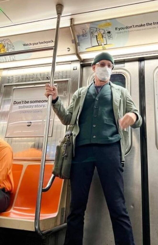 นักแสดงรุ่นใหญ่ปรากฏตัวในลุคสุดเรียบง่าย ใส่เสื้อผ้าธรรมดา สวมหมวกไหมพรมและหน้ากากอนามัย จนดูเหมือนชายวัยกลางคนทั่วไป ทำเอาผู้โดยสารที่อยู่ข้าง ๆ แทบไม่รู้เลยว่ากำลังนั่งใกล้ซูเปอร์สตาร์ฮอลลีวูดตัวจริง