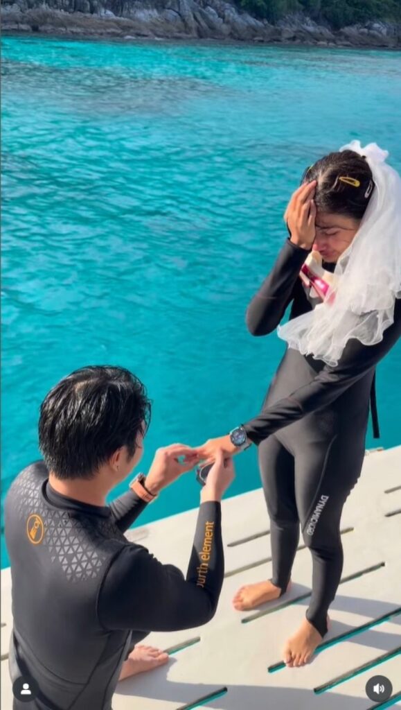 นางเอกสาว มะเหมี่ยว พรชดา ขึ้นแท่นว่าที่เจ้าสาวเต็มตัว หลังแฟนหนุ่มสุดหล่อสร้างโมเมนต์สุดประทับใจ ด้วยการทำเซอร์ไพรส์ขอแต่งงานใต้น้ำ ระหว่างทริปดำน้ำที่เกาะราชา จังหวัดภูเก็ต ซึ่งบรรยากาศเป็นไปอย่างโรแมนติกและอบอุ่น ทำให้เจ้าตัวตั้งรับไม่ทัน แต่ก็กลายเป็นช่วงเวลาที่น่าจดจำที่สุดในชีวิตของเธอ