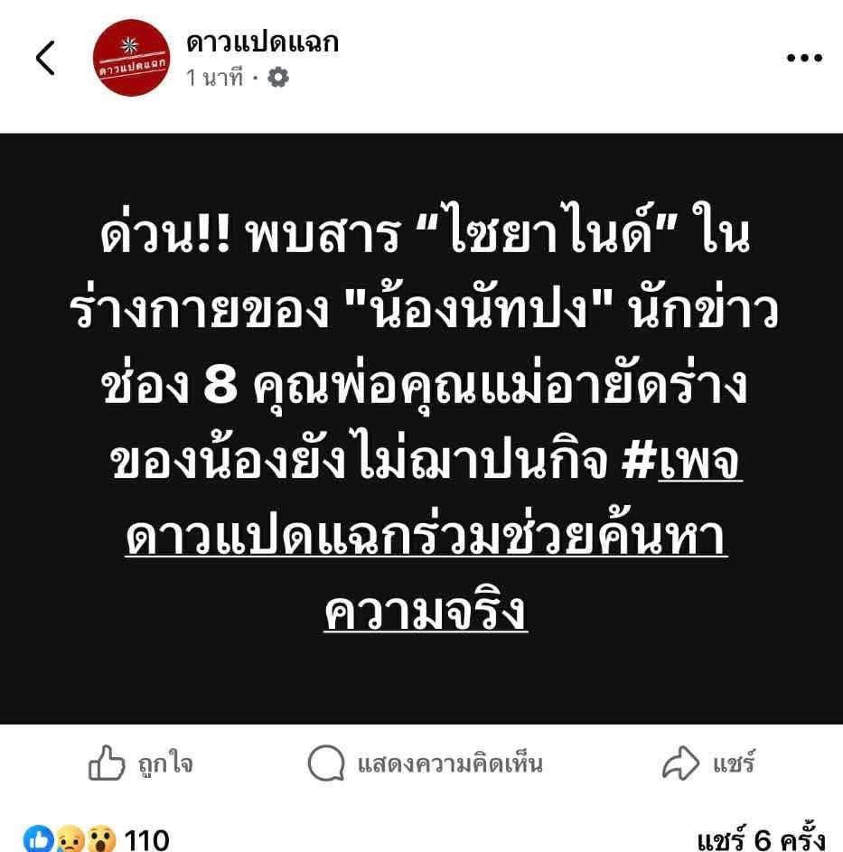 เกิดข่าวเศร้าวงการสื่อ หลังจาก ณัฐวุฒิ ปงลังกา ผู้สื่อข่าวช่องดัง ถูกพบเสียชีวิตในบ้านพักส่วนตัว ย่านบางกรวย จ.นนทบุรี