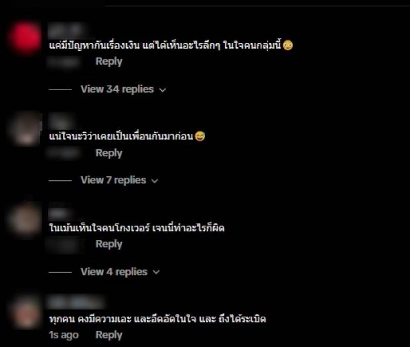 การเปิดใจในครั้งนี้กลับนำมาซึ่งกระแสสวนกลับจากชาวเน็ตจำนวนมาก ทำให้เกิดคอมเมนต์วิพากษ์วิจารณ์อย่างดุเดือด อาทิ การตั้งข้อสังเกตว่า ปัญหาที่เกิดขึ้นนั้นแม้จะมีเรื่องเงินเข้ามาเกี่ยวข้อง แต่ก็ได้เห็นสิ่งที่ลึก ๆ ในใจคนบางกลุ่ม หรือการเปรียบเทียบกับพฤติกรรมของเพื่อนคนอื่นในแก๊งที่เคยมีปัญหากัน [อ้างอิงคอมเมนต์: “เจนสุดาโดนเยอะสุดแต่นางก็ไม่ออกมาไลฟ์นะ…”] ซึ่งแสดงให้เห็นว่า ชาวเน็ตจำนวนไม่น้อยมองว่าความขัดแย้งที่ยืดเยื้อนี้เปิดเผยธาตุแท้ของความสัมพันธ์ในกลุ่ม