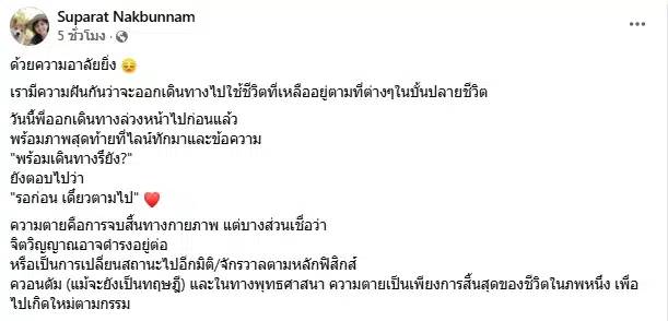 เรียกได้ว่าเป็นอีกหนึ่งข่าวเศร้าสำหรับ อิ๋ว ศุภรัตน์ นาคบุญนำ ผู้ประกาศข่าวและพิธีกรข่าวอิสระ อดีตรองโฆษกประจำสำนักนายกรัฐมนตรี มีชื่อเสียงจากการเป็นผู้ประกาศข่าว สถานีโทรทัศน์สีกองทัพบกช่อง 7 ในอดีต ได้สูญเสียคู่ชีวิต คุณประจวบ บุตรศิริ ด้วยสิริอายุ 66 ปี
