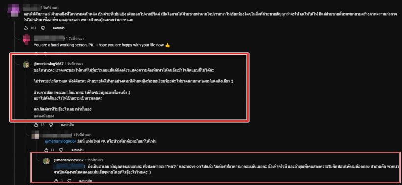 ทั้งนี้ทั้งนั้น ชาวเน็ตแห่แสดงความคิดเห็นมากมาย แต่มีข้อความหนึ่งที่แฟนสาวของพีเค มีเรียน สุเดชา อัคเซลการ์ด ออกมาตอบกลับทันที ดังนี้