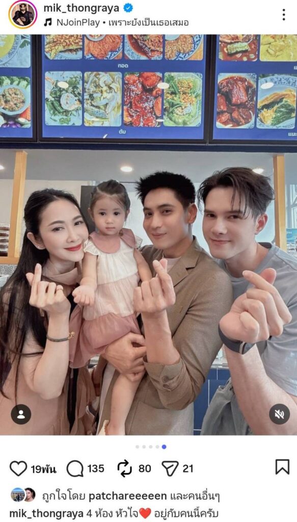 โดยหนุ่มมิกค์ได้โพสต์ภาพสุดอบอุ่นหัวใจ ขณะกำลังอุ้มเด็กหญิงตัวน้อยหน้าตาน่าเอ็นดู พร้อมกับระบุแคปชันหวานเจี๊ยบชนิดที่มดต้องขึ้นจอว่า “4 ห้องหัวใจอยู่กับคนนี้ครับ” เรียกว่าเป็นการประกาศชัดเจนว่าหัวใจของพระเอกหนุ่มรูปหล่อคนนี้ได้ถูกยึดครองไปเรียบร้อยแล้วโดยสาวน้อยปริศนาคนนี้
