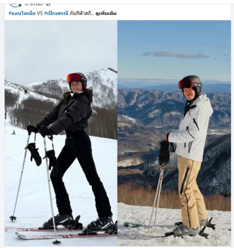 ชนวนเหตุเริ่มมาจากชาวเน็ตและเพจดังตาดีแอบไปจับโป๊ะภาพถ่ายของทั้งสองคน แล้วพบว่าฉากหลังที่เป็นทิวทัศน์หิมะและลานสกีนั้นมันช่างบังเอิญเหมือนกันเป๊ะราวกับถอดแบบกันมา จนหลายคนปักใจเชื่อไปแล้วว่าทริปนี้ต้องมีการควงคู่กันไปสวีทหวานท่ามกลางความหนาวแบบเงียบๆ แน่นอน